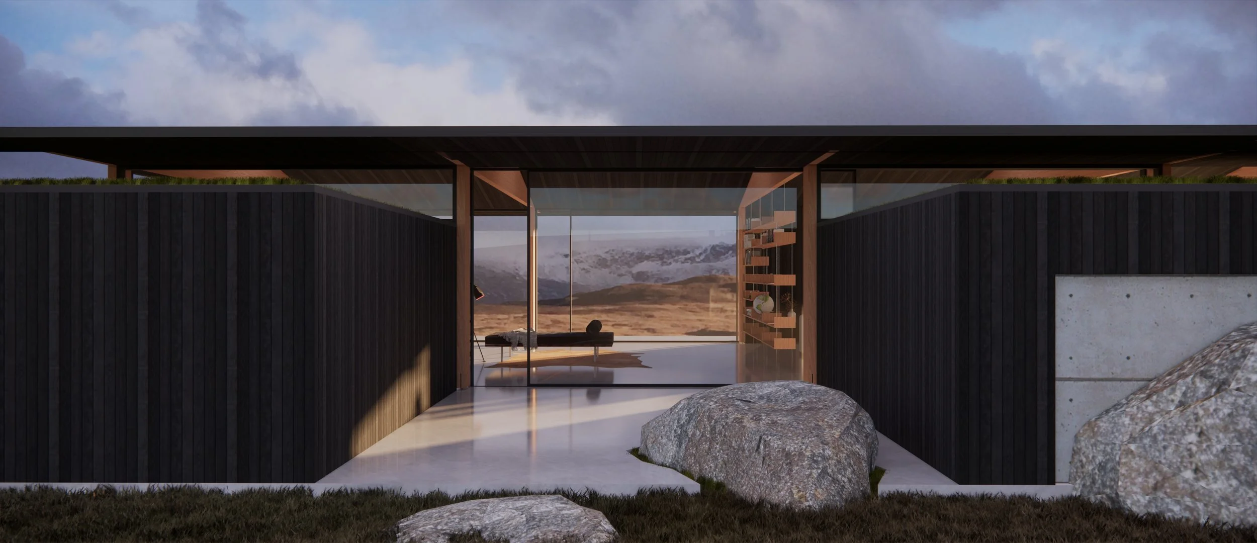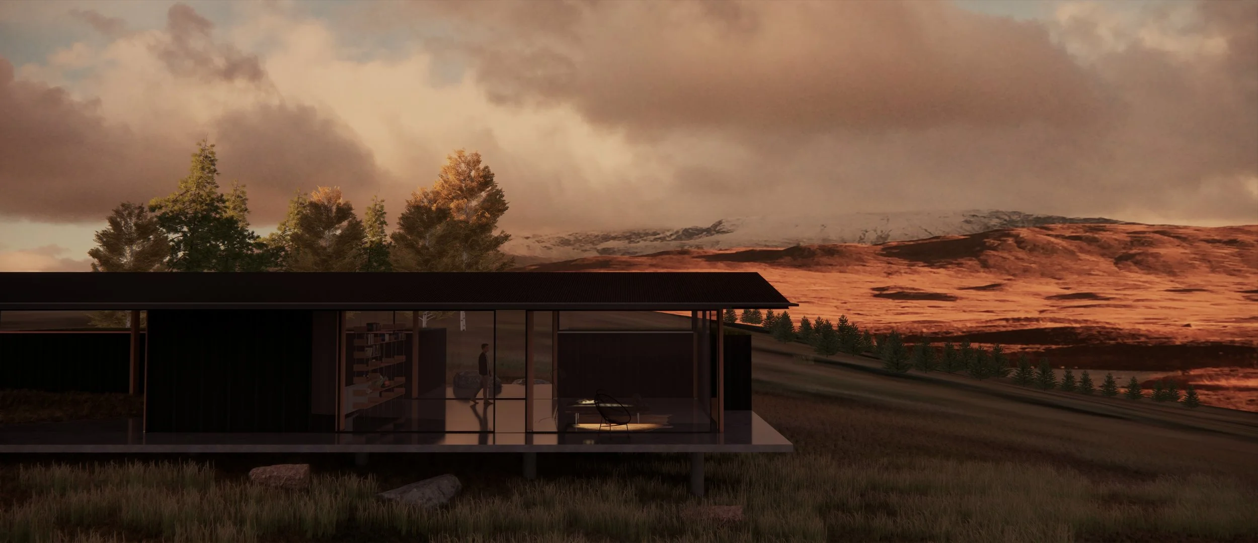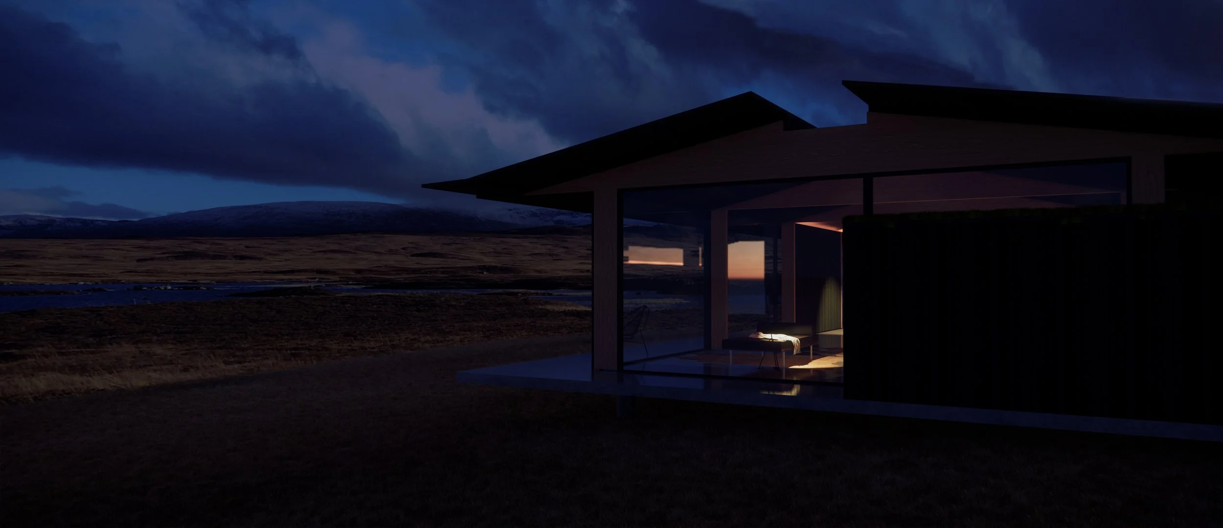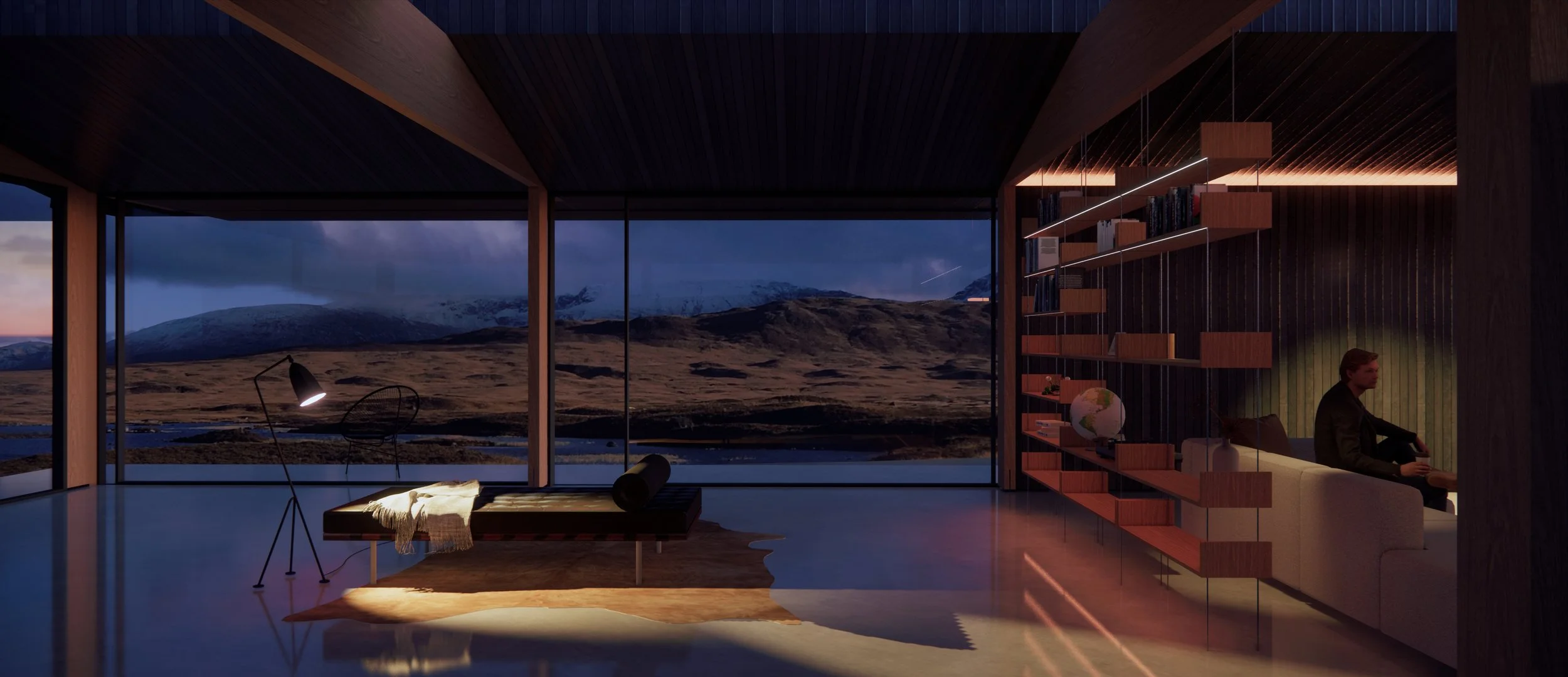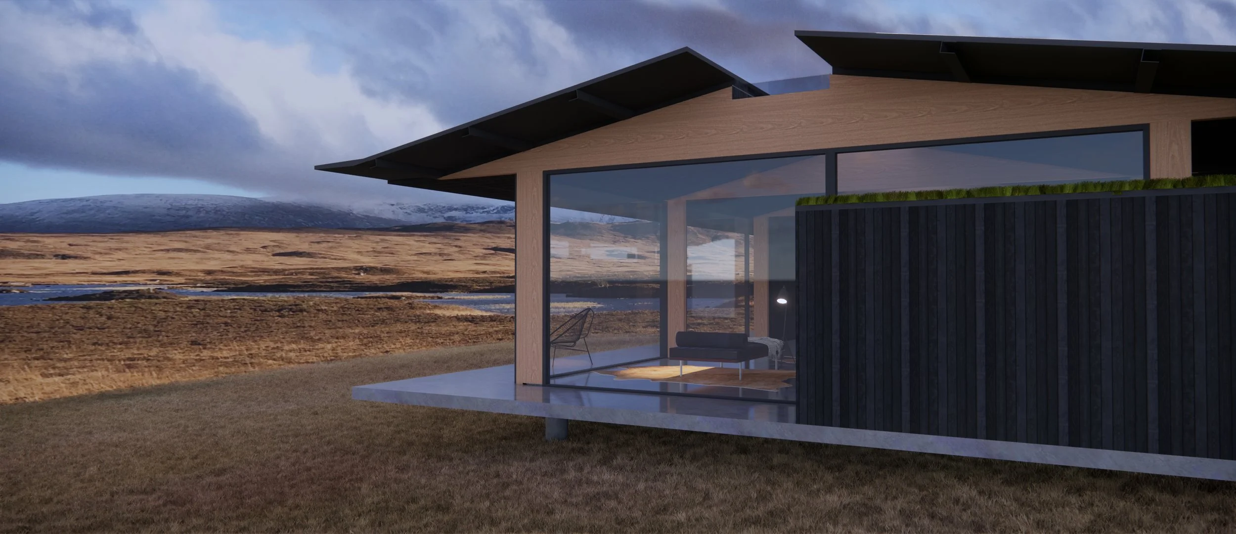 With a huge number of derelict buildings scattered across this area, this is certainly an emerging opportunity to bring life back to these places. This concept was to explore a light-touch, sustainable, modern reinterpretation of the croft-house typology, making the most of the panoramic mountain views and larch forests surrounding the site.